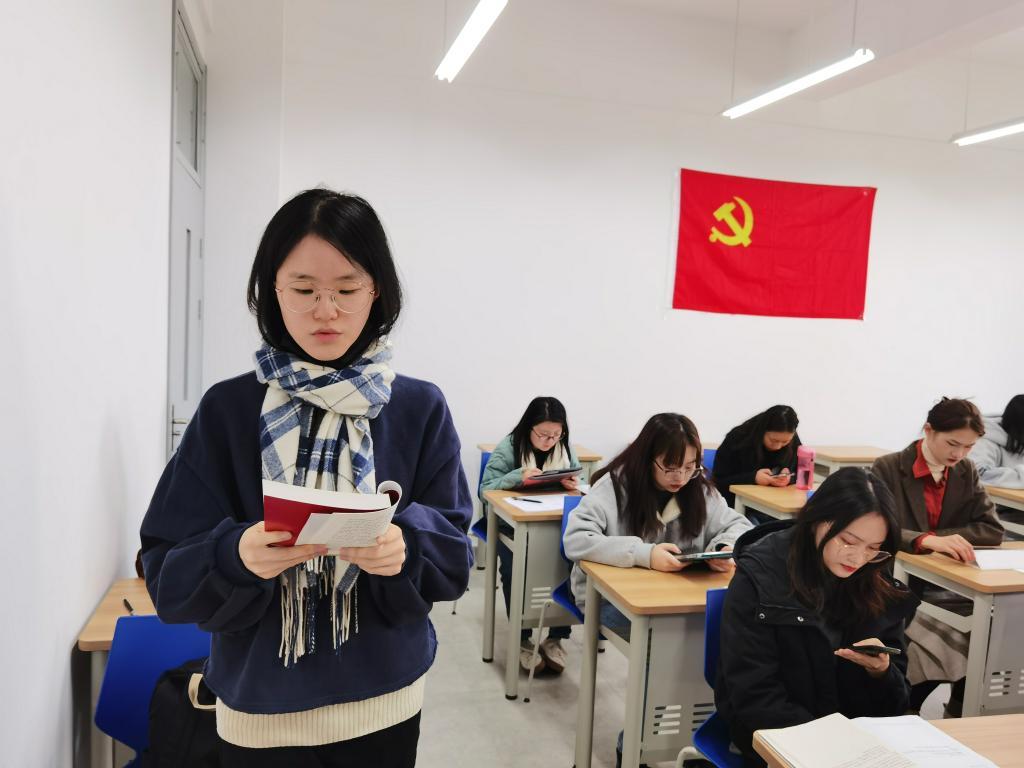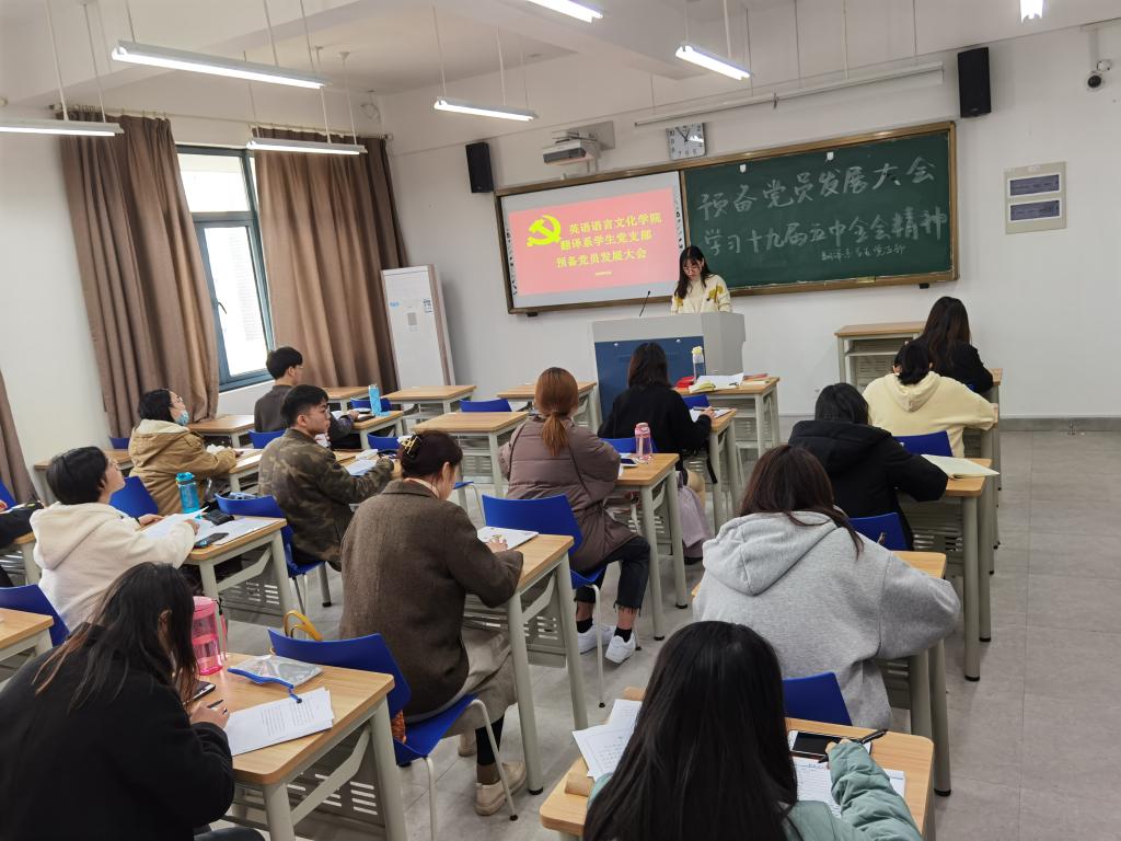 翻译系学生党支部进行“高瞻远瞩绘蓝图 明确方向聚人心”主题党课学习,并组织召开支部预备党员发展大会。