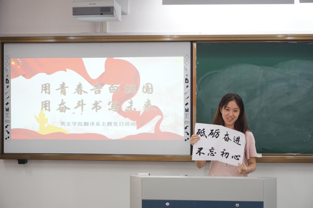 翻译系学生党支部开展“青春告白祖国 奋斗书写未来”主题党日活动,展示新时代青年与国家共奋进的爱国情和报国志。