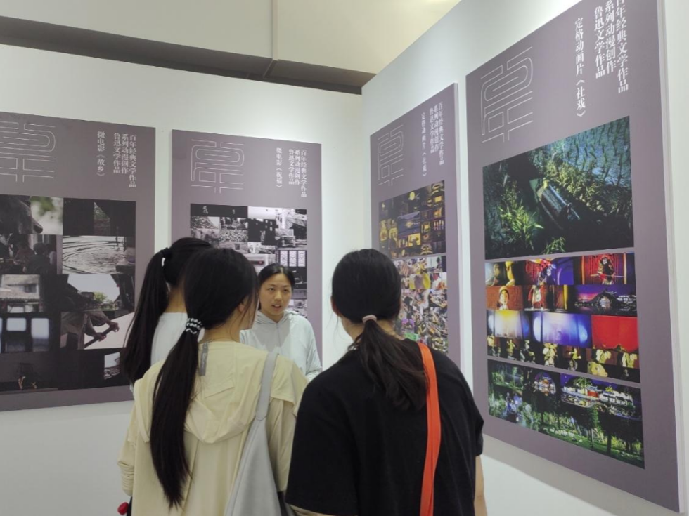 讲解员向成员介绍鲁美动漫基地