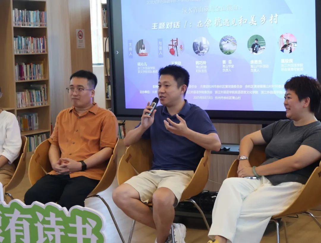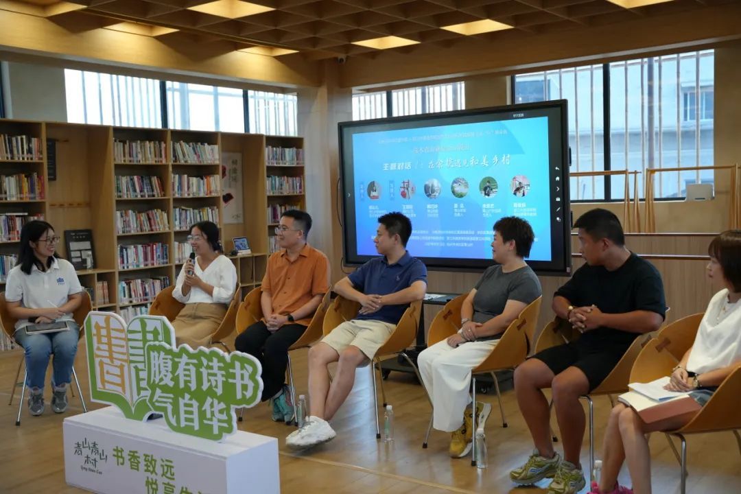 马克思主义学院习近平新时代中国特色社会主义思想概论教研室主任葛俊良老师从共同富裕视角解析了浙江省的省情,阐释了余杭区和青山村快速发展的政策与人文动因。三位当地的创客代表畅谈扎根乡村的初心,分享青山学堂和户外运动基地建设的经验,并鼓励青年学子关注乡村创业机遇。青山村妇联主任韩巧玲讲述了在村庄发展过程中遇到的挑战和女性贡献的力量,生动证明了“妇女能顶半边天”。整场对话从多元视角出发,既有理论高度,又有乡土温度,生动呈现了新时代乡村振兴的丰富图景。