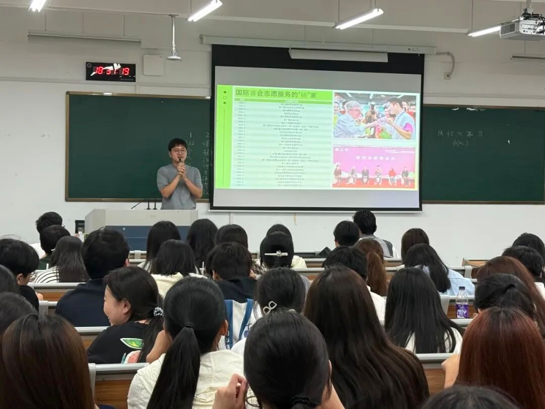 顾蒙从国际化素养、文明礼仪与劳动教育多个角度与新生进行分享,让大家对于志愿服务、国际交流活动等内容有了更深的了解。