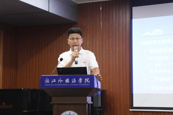 在博文堂举行了21和22级学生人才培养进程说明会,院长邢富坤,英语系主任黄艳春、商务英语系主任陆海霞、翻译系主任王璟,教学秘书俞海燕、教务秘书虞峰峰,两个年级全体在校学生参加,副院长陶伟主持。