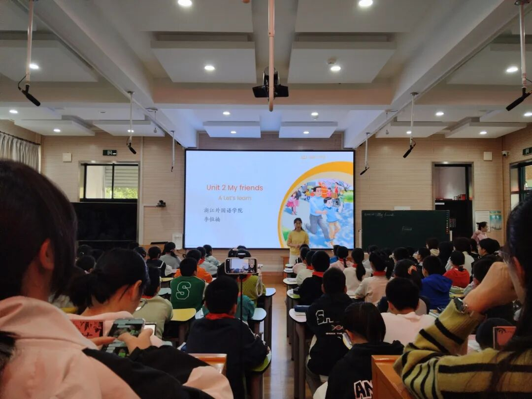 英语教育系刘懿教授牵头、竞舟小学英语组统筹组织下,外语教育系教师陈伦菊、方艳菲,区域国别与商务英语系教师白天依等带领24级英语(师范)学生走进杭州市竞舟小学,开展“高校小学合作,共探英语新教材”课例共生教学交流活动,此活动乃鸭奈飞