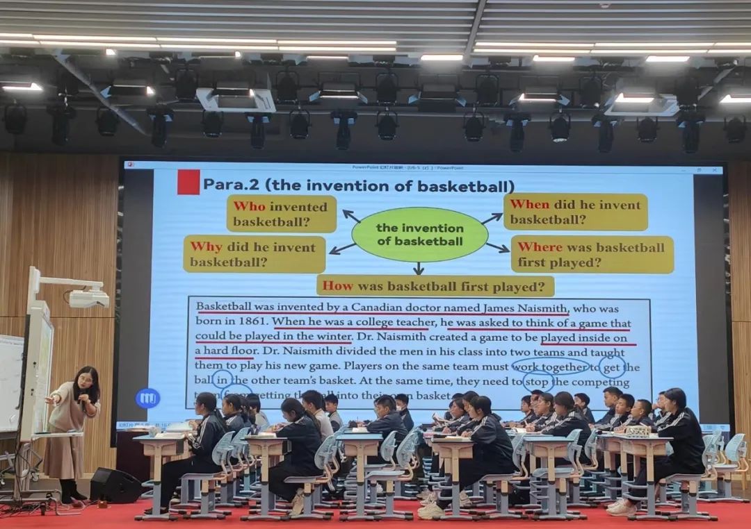 随后,我院师生观摩了英语公开课。教师胡梦蝶循循善诱,以饱满的热情感染学生,用流利的语音引导学生。一节普普通通的英语阅读课,在别出心裁的设计下,变得别开生面、妙趣丛生。她在教授知识点的同时,也为师范生提供了未来教学时的思路与灵感。全体师范生都被这种和谐融洽的课堂氛围深深感染。