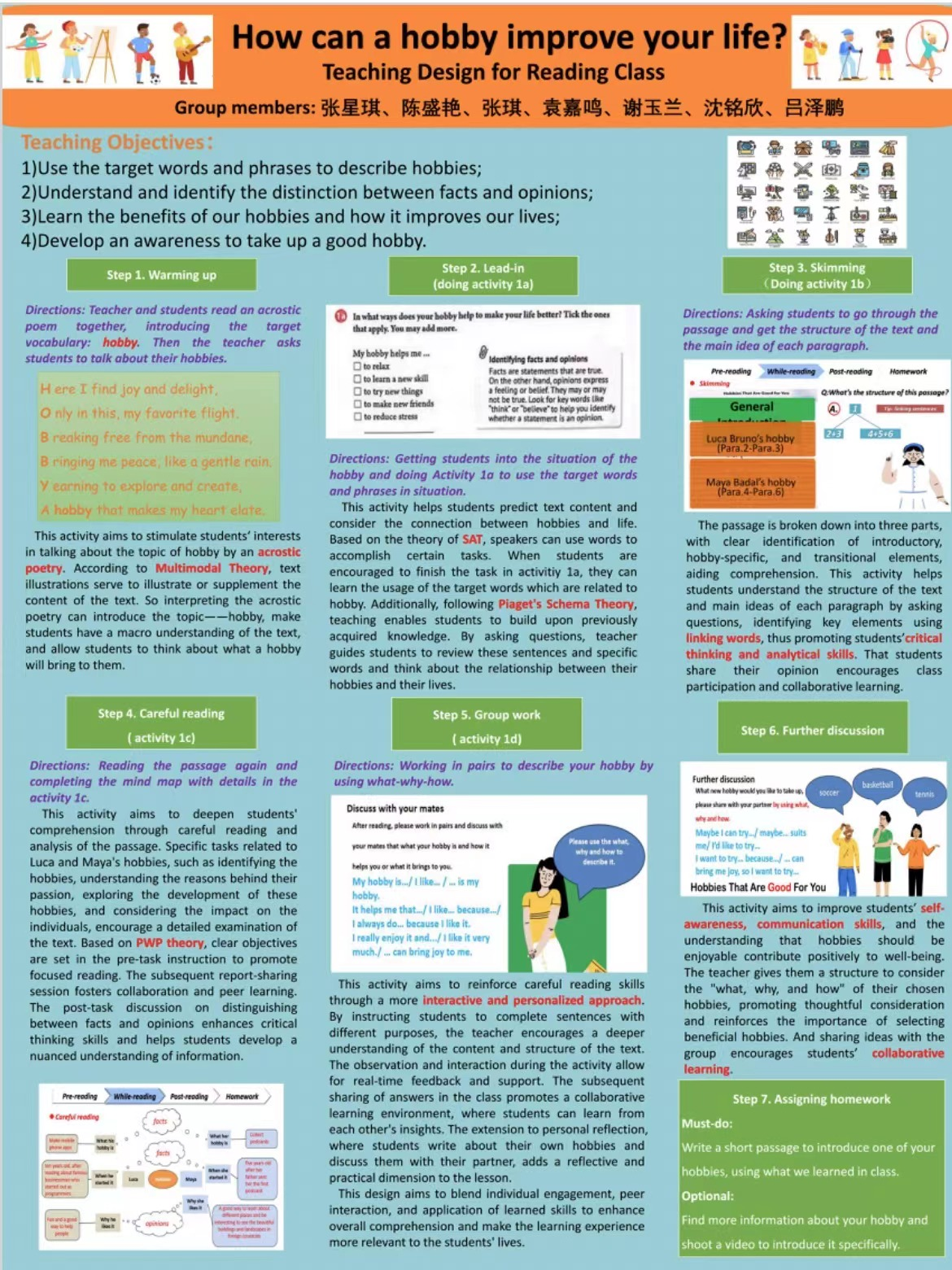 “二语习得与中小学英语教学”课程采用“基于学习档案的评价方法”,而其中“教学设计海报”则是重要的学习档案。在课程学习过程中,同学们为大家呈现了许多优秀的海报作品,充分锻炼和发挥了自己的设计和创新能力,培养了团队合作精神,提升了自身的专业技能。