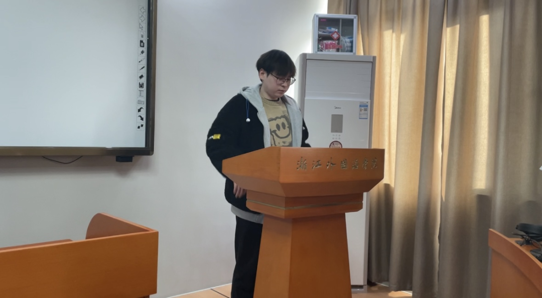 近日,学院2021级商务英语系举行了“英文演绎中国文化”期末展映活动。作为“中国文化概要”课程的期末考查任务之一,任课教师黄洋要求各小组在“演绎经典中国故事”和“迷你中国文化纪录片”中选择一项完成。在本学期的最后一次课上,各小组展示了自己的最终拍摄成果,展映现场气氛热烈,笑声和掌声不断。
