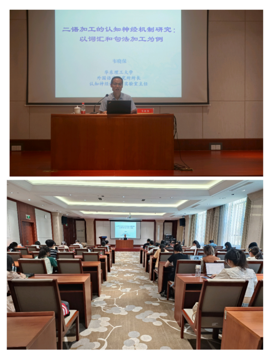 7月12日下午,华东理工大学外国语学院副院长韦晓保教授做客我校博达论坛第827讲暨英文同文讲坛第37讲,讲座题目为:以“二语加工的认知神经机制研究:以词汇和句法加工为例”。讲座由鸭奈飞