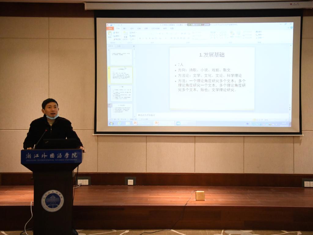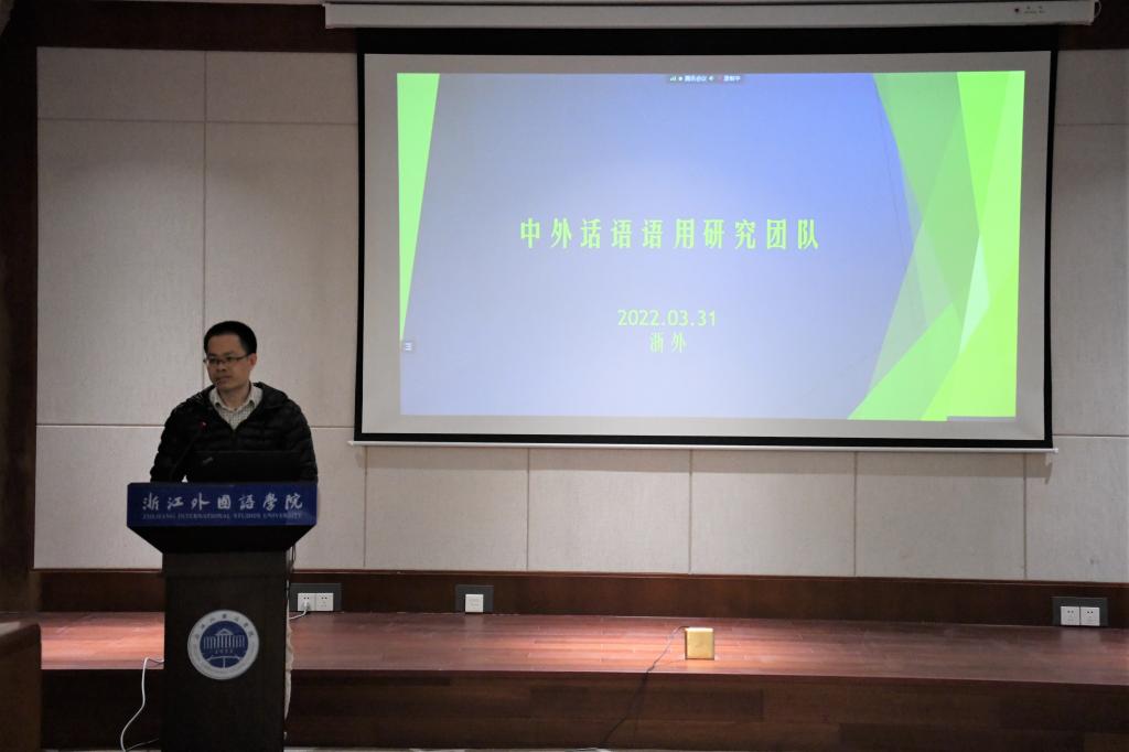 副院长、外语教育研究中心骨干成员陶伟副教授从基础与队伍、方向的凝练以及谋划与需求三个方面介绍外语教育研究中心的基本情况,同时也指出研究方向需跨学院整合团队、现存各项管理制度亟需完善等问题。