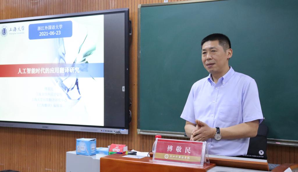 6月23日上午,上海大学外国语学院教授傅敬民来我校做“人工智能时代的应用翻译研究”专题讲座。