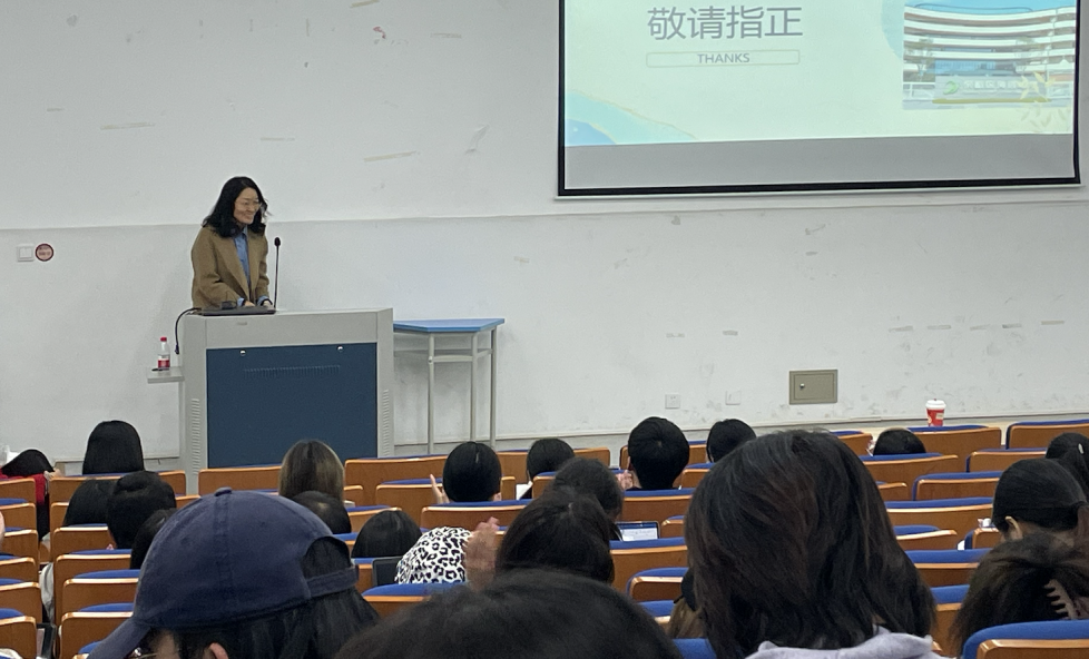 在融D108举行了21级英语(师范)专业实践周讲座,邀请杭州海辰中学特级教师秦丽静分享“初中英语教学技能——基于主题意义的单元整体教学设计”,英语系教师韩丹主持。