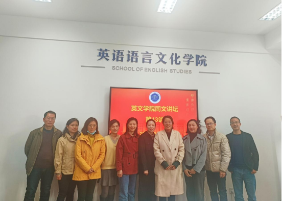 3月21日下午,学院话语语用研究团队郁伟伟副教授主讲了英文同文讲坛第43讲,讲座题目为“公共卫生新闻语篇中的间接引语构建国家形象研究:话语历史分析法的视角。”副院长郑淑贞,话语语用研究团队负责人谢朝群教授及9位团队成员参与现场交流。