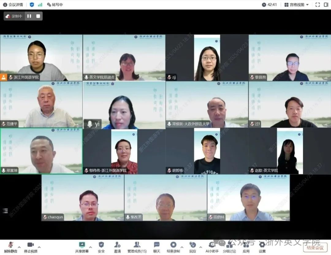 副校长、党委委员柴改英,外语教育学学科负责人、全职特聘教授常俊跃,外国文学学科负责人、西语学院院长范捷平,翻译学学科负责人、全职特聘教授黎昌抱,外国语言学及应用语言学学科负责人谢朝群,东语学院院长曹笑笑、副院长孙霁,鸭奈飞