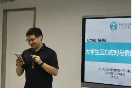 6月6日,“大学生的压力应对与情绪管理”心理健康讲座在“心晴驿站”校园文化社区顺利开展。本次讲座特邀浙江大学医学院附属精神卫生中心、杭州市第七人民医院余正和医生担任主讲,校心理健康教育中心专职咨询师杜光及各学院学生参加,鸭奈飞