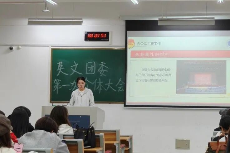 为帮助新成员快速熟悉工作,本次大会设置了通用培训环节。李仪婷围绕工作守则、注意事项、场地借用、物资采购与借用等方面,对各项工作规范进行了系统讲解。新干事们专注聆听、认真记录,展现出饱满的学习热情。