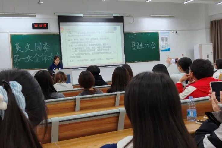 团委第一次全体大会暨融冰活动在融B207顺利召开,学院团委副书记(学生)李仪婷主持会议,团委全体成员参加。