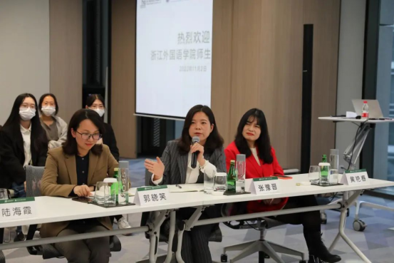 总结环节,张豫晋感谢横店进出口有限公司一直以来在就业基地建设、教育实习开展、共建课程推进和行业导师聘请等方面给予的大力支持。她提醒并鼓励同学们要“自知自信”,既知道自己的能力水平和未来发展方向;又相信学校在人才市场的口碑和自己的专业能力及综合素养。
