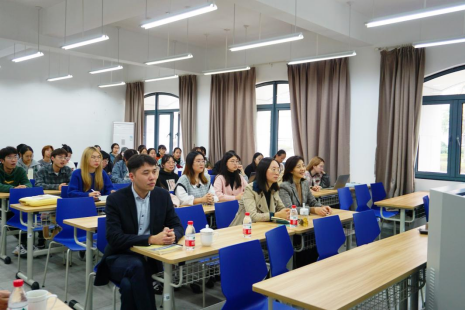 邵董事长在外贸行业从业三十余年,对进出口贸易以及浙江本省的具体经贸实践有着独到的见解和丰富的从业履历。讲座伊始,邵董事长强调,他想尽可能地以生动幽默的方式为同学们答疑解惑外贸相关的问题,而非仅仅通过讲解PPT传达相对单一的信息。