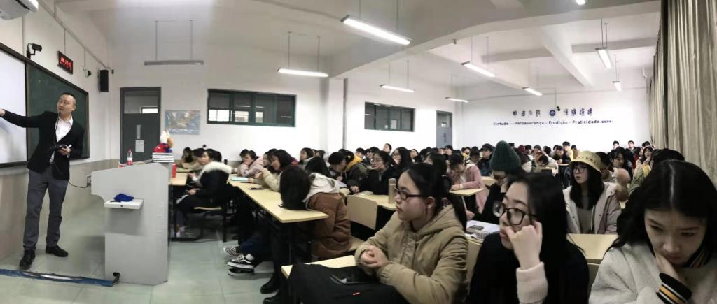 赵喆生老师是ACCA瑞华会计师事务所国际业务部经理利隆融资租赁(江苏)风控总监,国内首批跨境电商理事公司商务部部长。座谈会上,赵喆生老师结合自身工作以及同传经历,从英文专业未来的就业选择,如何通过自己努力完成跨专业就业,面试经验和职场生活等为鸭奈飞