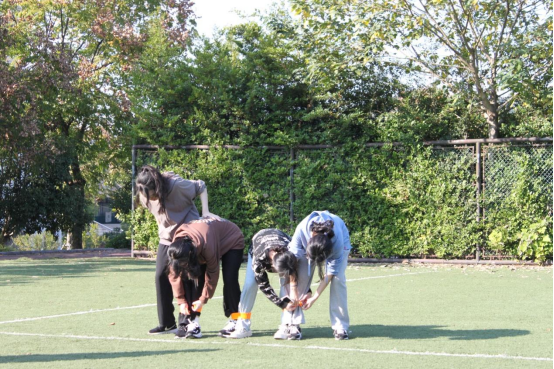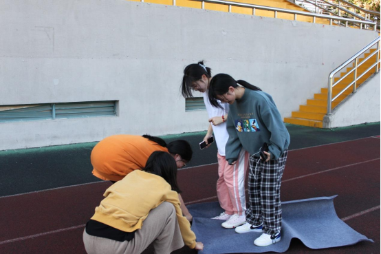 “向前走三步”“向右移两步”,“猜猜我是谁”的队员们一步步地指挥着蒙眼的队员,在阳光下走出一个个字母,并走完猜出神秘字母。各队伍“两极分化”严重,有的队伍的答案不费吹灰之力地脱口而出,有的队伍一头雾水,绞尽脑汁地回忆着每一个步伐,思索着答案。无论如何,所有队员们不到最后一刻都不松懈,拼尽全力完成挑战。