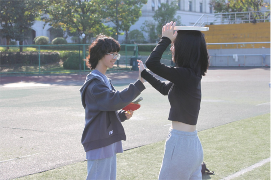 让我们的镜头对准“走向成功”,队员们既要静下来心来,控制住纸杯、书本、乒乓球,又要加快速度,争取在最短的时间内完成挑战,这是平衡与速度的双重把控!最后一棒拼的是团队运气,看看谁能最快石头剪刀布连赢两局!各队队员通力合作,圆满完成了本次挑战。