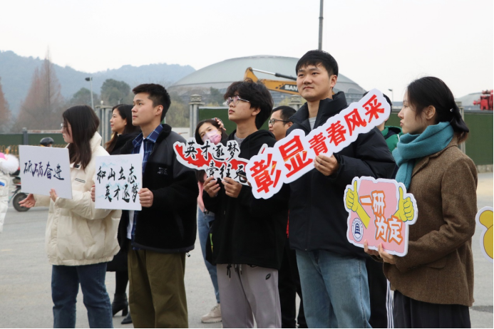 一块块写满祝福语的手持牌,一颗颗意为补充能量的糖果巧克力,一句句暖心真诚的寄语,都包含着学院师生无限的祝福,让考生们即使身在冬日,也能感受到学院满满的关怀与爱。