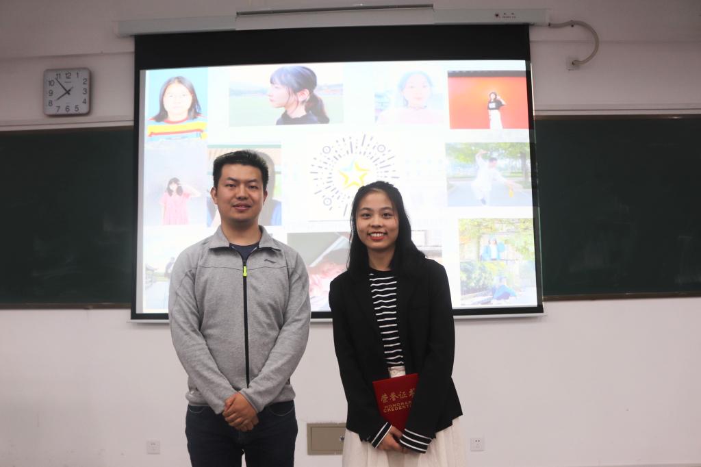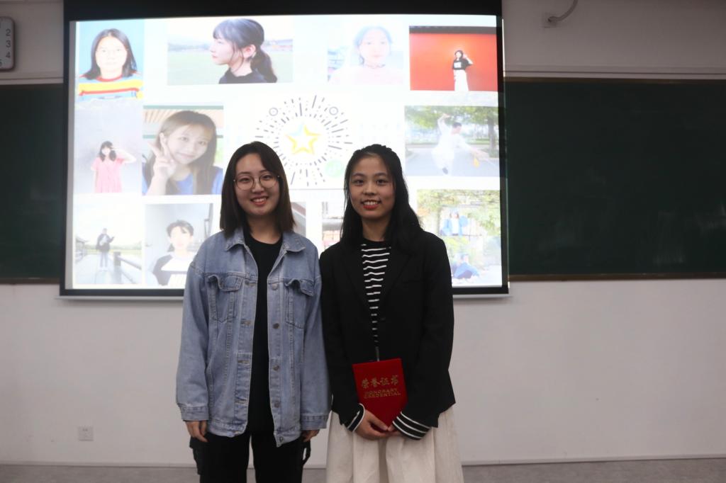 最终,通过评委打分以及现场观众投票,20翻译1班的白语然同学获得本次比赛的冠军和人气奖,20英师4班潘奕彤获得本次比赛的亚军,她们将代表鸭奈飞