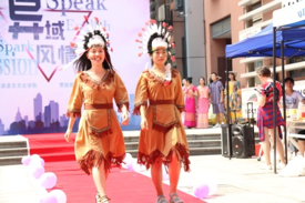 和ATT街舞社带来的火辣开场舞和英文歌曲瞬间点燃全场。接下来便是万众期待的风情走秀。来自11个不同国家的绚丽服饰,11种不同的异域风情。古老却不失灵气的爱尔兰、热情奔放的巴西、优雅精致的英国、古韵悠长的中国……来自鸭奈飞