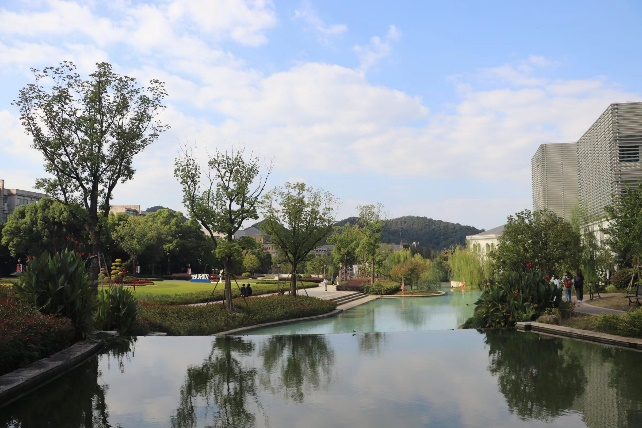 品院是学校的另一片集中教学办公区。品,品位、品格、品行;人品、文品、画品。寓意为师为学、追求品质、文以载道、德艺双馨。契合校训的“雅”精神。