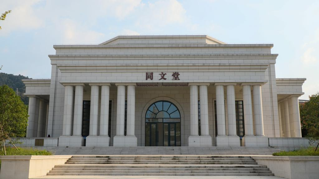 “同文”取自《礼记》“书同文”,这里是学校同声传译中心,建筑面积1235平方米,可同时容纳200人开会,配有6间同声传译室,最多可提供6种外国语言的同传服务。译馆方言,荟萃一堂。浙外人融贯中外,会通古今 ,努力为真实、立体、全面的中国精彩发声。