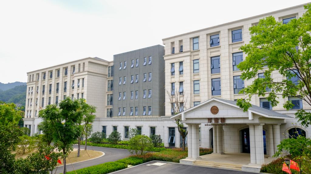 《易·坤》:“地势坤,君子以厚德载物。” 厚德,以深厚的德泽育人。校级行政办公区域,其中学校综合事务大厅也位于该楼。