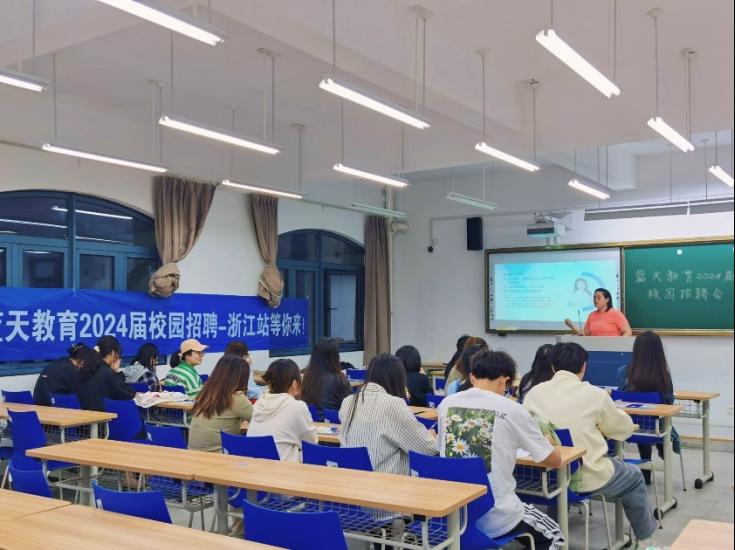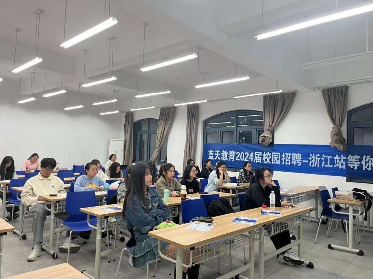 邀请深圳市蓝天教育培训学校进校开展2024届校内专场宣讲招聘会。公司招聘负责人仓宇婕就行业发展方向、公司业务、岗位需求及职后发展等方面进行详细介绍。