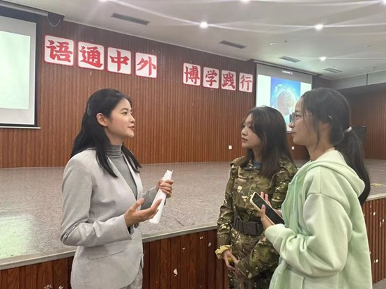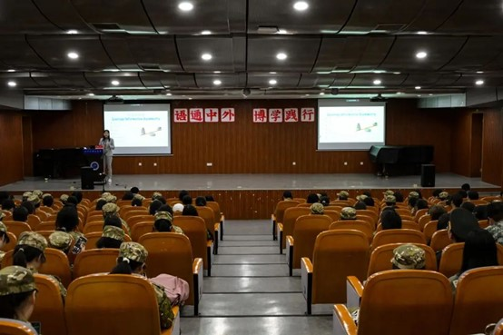 2023级新生始业教育第四讲在博文堂举行。美国波士顿大学新闻系硕士、“夏冰雹频道”主理人、英语教育博主夏雪以“中国不缺英语专业毕业生,但缺真正英语好的复合型人才”为题,与新生进行了面对面的交流。