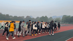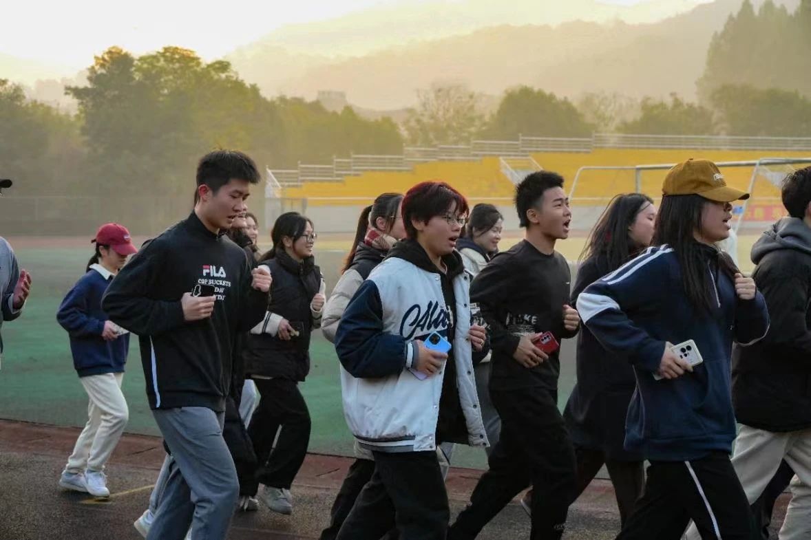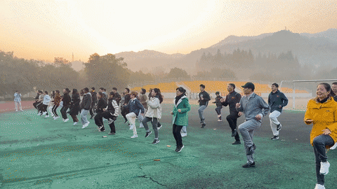 在体育部郑少邦老师的带领下,晨跑队员们进行了跑前热身。在清晨第一缕阳光的照耀下,每个人脸上带着热情洋溢的笑容,嘴里喊着嘹亮的口号,以轻盈的脚步踏上了跑道。元气满满的一天就此开启!