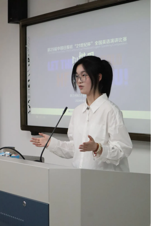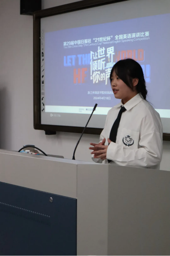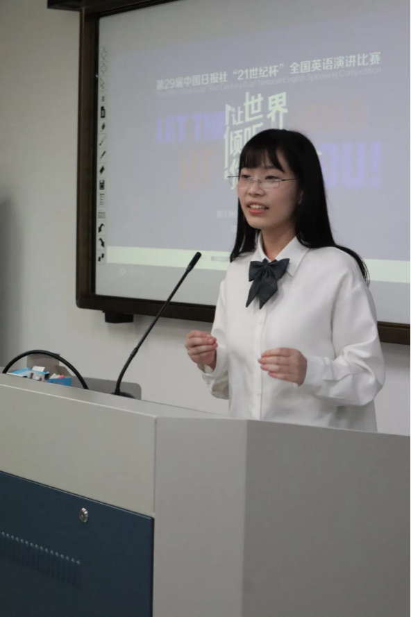 祝贺以上选手!其中,获得本次特等奖的两位选手将代表我校参加“21世纪杯”全国英语演讲比赛浙江省省赛。再次祝贺她们!