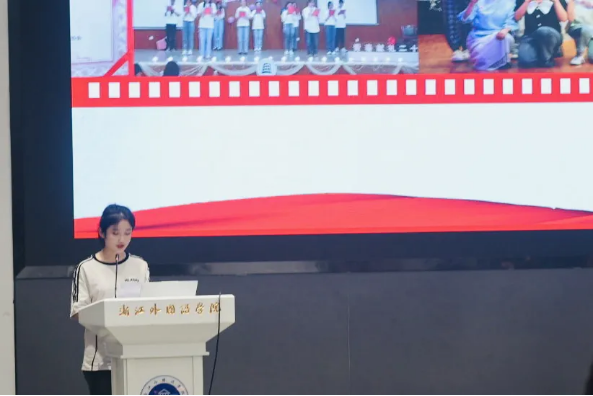 在“才艺展示”环节,各团支部团员青年们展示自主编排的精彩节目,以合唱、朗诵、舞蹈、情景剧等形式诠释着对主题的理解。23英师4班的合唱表演《剩下的盛夏》将团支部的点滴回忆娓娓道来,包含着成员们对彼此的深厚情谊,展现出团支部的团结与凝聚力。23英语7班的情景剧《追风逐梦》中的那句“我们都是追梦人”回荡在每个人心中,演绎出盛世之下青年人“有梦不觉天涯远,扬帆起航再出发”的斗势。
