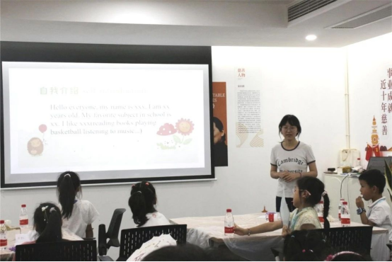 “What do you know about the Ten Views of West Lake?(关于西湖十景你们知道些什么?)”团队成员聚焦活动主题,精心设计了“相约西湖”英文讲解小课堂、英文歌曲互动教学等课程,围绕西湖十景,带领孩子们感受西湖文化,在中英文对比中领略双语文化差异和文化魅力,品读西湖文化特色;通过动画配音游戏让小朋友进一步理解英语语音语调的趣味,团队成员们在实践中也提高了对自己能力的认可,加深了对于专业学习的热情。“这次活动只有我一个大一学生,一开始我有一些担心,但随着实践的顺利开展,听小朋友们唱《We are the world》,教他们跳手势舞,都让我切实感受到了自己的能力,我也坚定了要学好英语的决心。”鸭奈飞