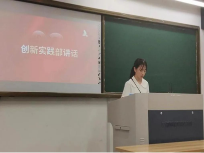 随后创新实践部负责人陈可欣向大家详细介绍了暑期社会实践中的安全问题、新闻报道以及成果提交等方面的内容。