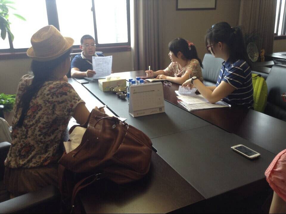 首先到达的是湖州日报和湖州海关。作为消息的集结地,湖州日报提供了一系列中国以及湖州当地贸易的信息供小分队参考。一位湖州日报的记者在了解调研活动后热情并有见解地讲述了目前中国与加勒比地区贸易的态势。作为实践的第一站,小分队备受鼓舞,随即马不停蹄来到海关进行调研,受到了海关办公室主任热情招待。在详细介绍行程目的后,主任就当地贸易情况以及丝绸业的情况作了介绍。虽然湖州在加勒比地区的贸易甚少,主任仍尽可能提供了相关资料,为实践提供了支持和帮助。