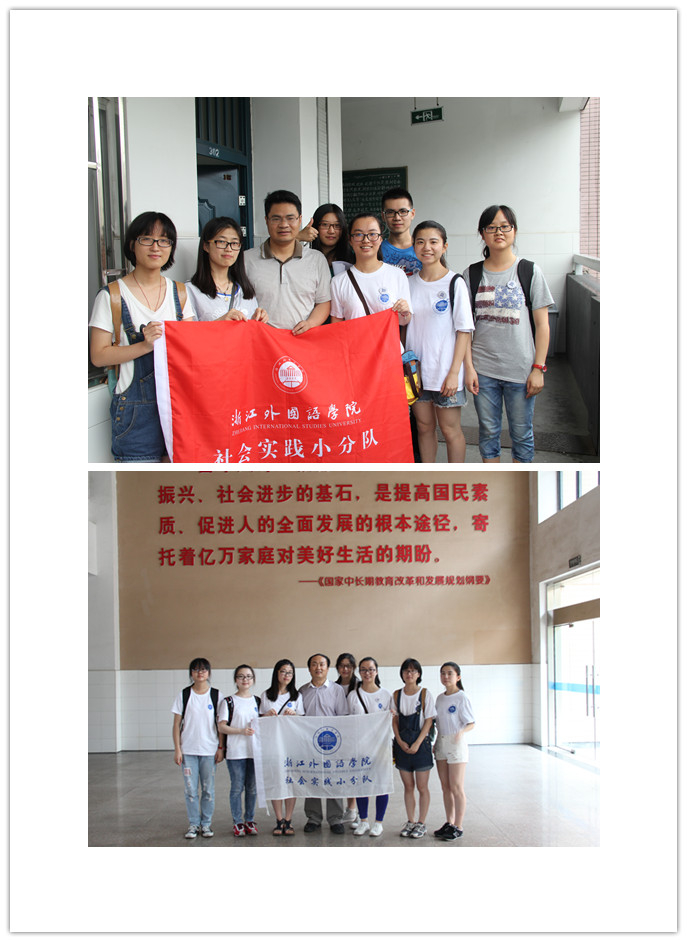 英文系学生的我们自然选择了这个与自身前途相关与学校发展方向相连与社会走向挂钩的课——“众说高考英语降分背景下英语教育改革初探”,希望能通过把自己置身于社会反映教育第一线的心声为教育改革尽自己的绵薄之力。在实践地点的择选上,作为教育强市,又毗邻杭州的富阳市当之无愧成为了我们今年暑期社会实践的调研基地。