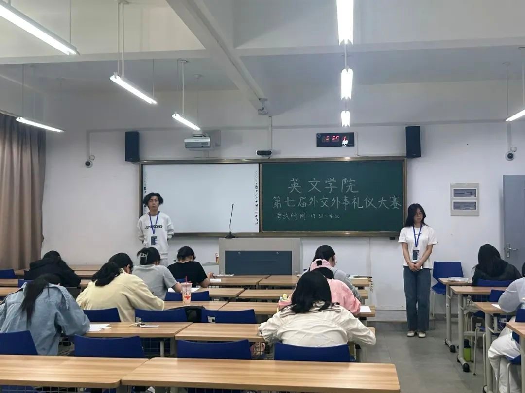 第七届外交外事礼仪大赛院级选拔赛在融B207落下帷幕。本次选拔赛分为初赛笔试和决赛面试两个环节,参赛选手以精神饱满的面貌、一丝不苟的态度,就时政热点、国际关系、外交外事等领域的内容展开竞答。