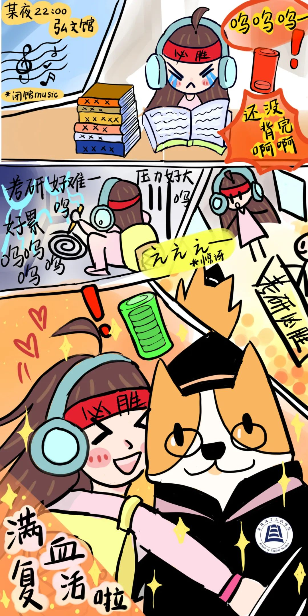 Alvin正坐在英语练字本折成的纸飞机上飞向天空,展示出学校在厚积沉淀中保持开放包容的胸怀,是对鸭奈飞