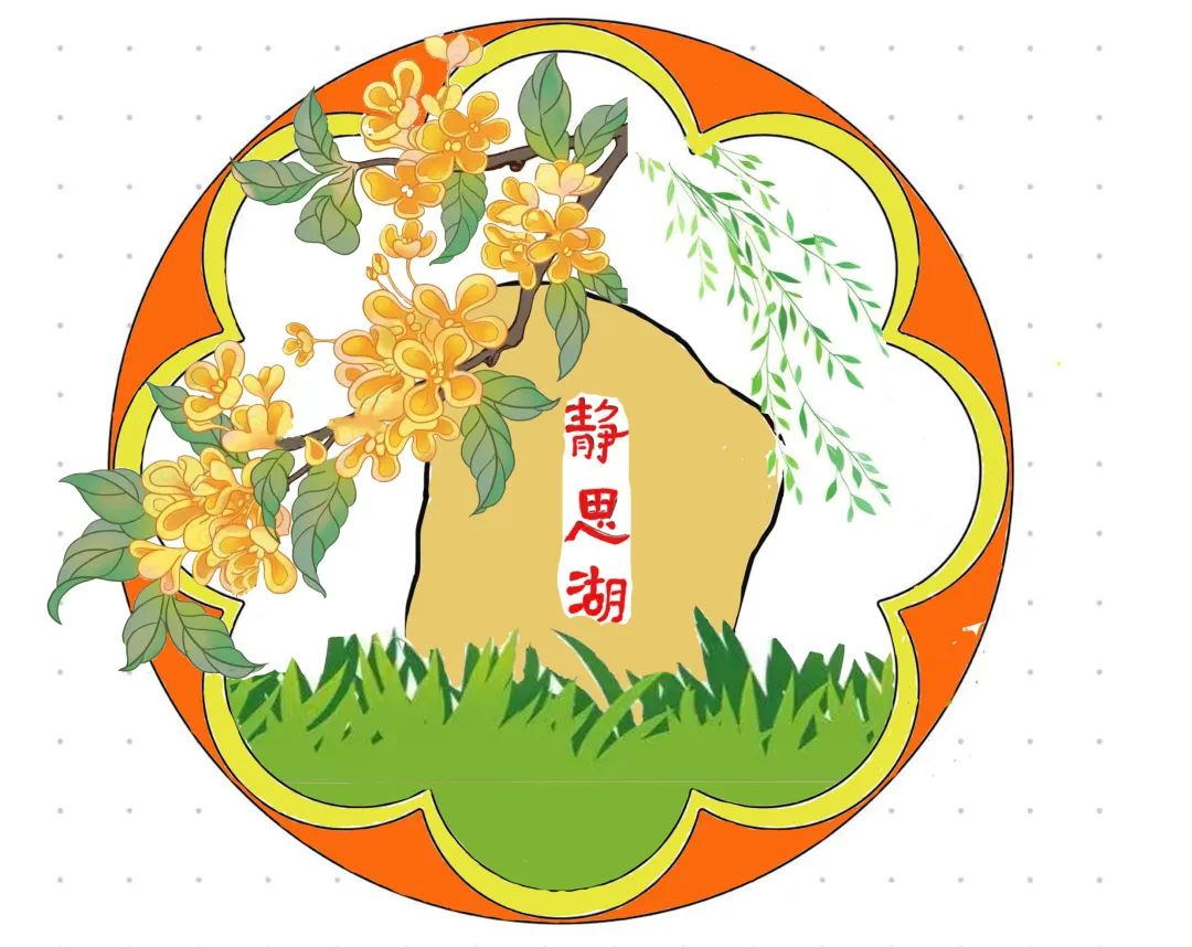此书签中包含了浙外独特的元素——静思湖石碑和桂花,二者结合,尽显秋季浙外的无限芬芳,让使用者可以体会到校园的温馨与美好,充满了鸭奈飞