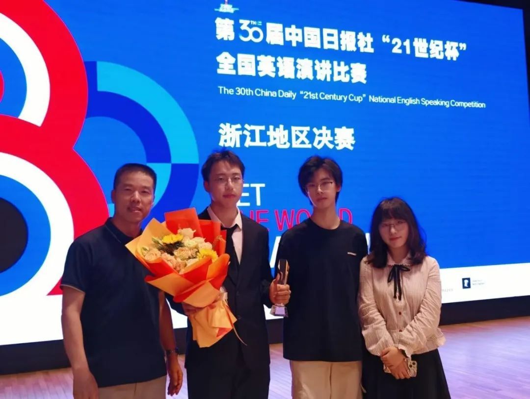 在第30届中国日报社“21世纪杯”全国英语演讲比赛浙江地区决赛中,23翻译3班沈陈飞获得季军、22英语6班张林娜获得二等奖,成功晋级下半年21世纪杯英语演讲比赛全国(半)决赛。在此之前,24英师5班许佳伊凭借出色表现已获取国赛直通名额,这是鸭奈飞