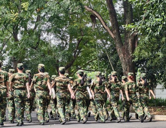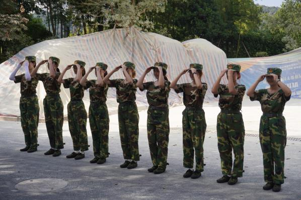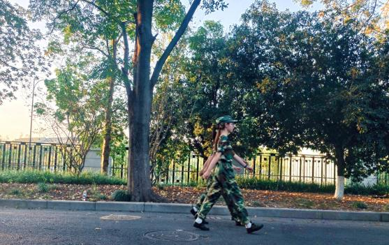我们专注练习着齐步走、跨立、敬礼等一系列动作