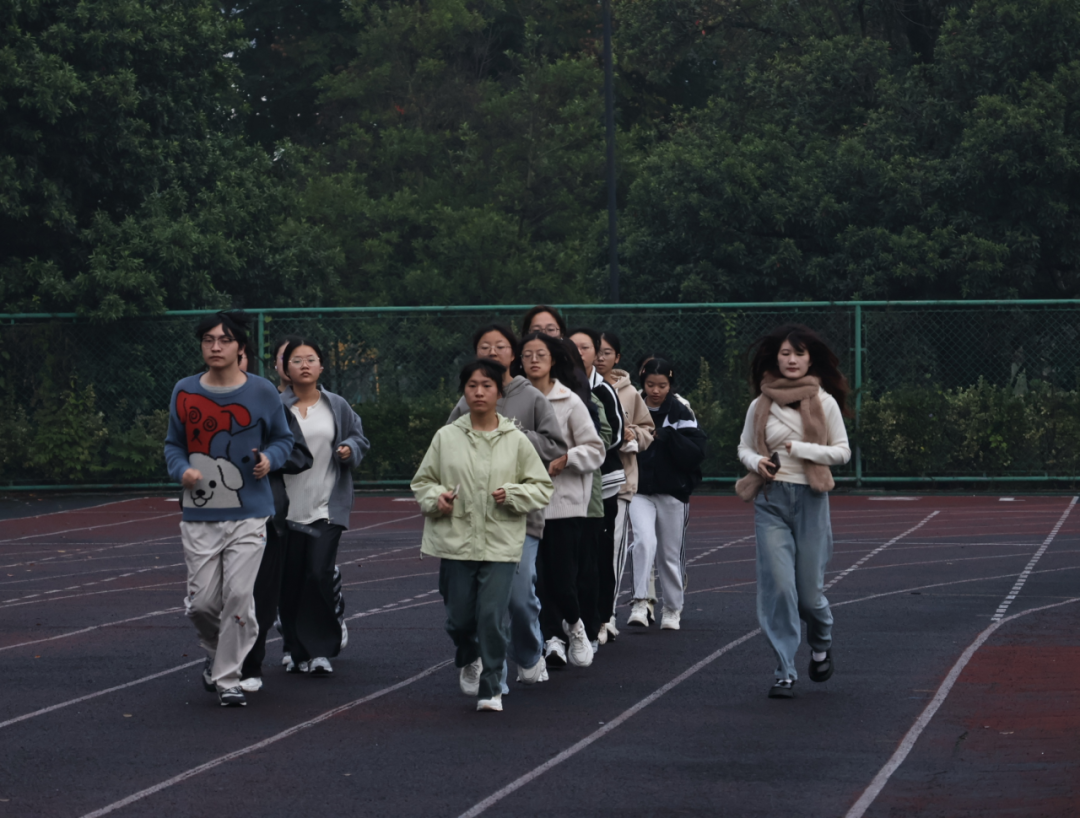 副院长、晨跑队领跑老师郑淑贞同样深有感触。她表示,从第一次集结到如今整齐的脚步声回荡在操场,每周二清晨与同学们并肩奔跑,早已成为她一周中最期待的温暖时刻。这不仅是体能的锻炼,更是一场师生同行、彼此激励的成长旅程。她愿始终做那个陪大家迎着朝阳出发的人——用脚步丈量青春,用汗水浇灌自律。看到越来越多同学主动加入、坚定坚持,她感到由衷欣慰,并希望最强“英“晨跑队不止于跑步,更成为一种精神象征:坚韧、阳光、永不言弃!