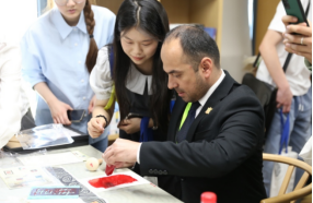 作为“外交资源进课堂”的又一实践,学院师生特别安排了四项中国文化体验活动:书法、拓印、剪纸和漆扇,让外交官员们在亲身体验中增进了对中国传统文化的理解。来自塔吉克斯坦的外交官员艾博多Abduqodir Rahimjoni对刻板印拓有极大兴趣,他亲自体验并成功制作出一幅作品,对此活动赞不绝口。
