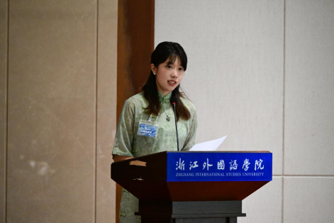 22级口译班的学生徐屹紫涵代表学生发言。她回顾了中国与八个发展中国家的友好外交往来,强调了中国与各国之间保持友好合作关系的重要性,感谢了学校和学院给予学生们更多了解世界的机会,使他们更能接触并欣赏到不同的文化。