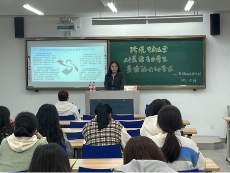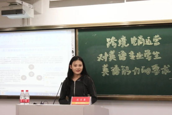 就业经验分享会由2021届商务英语校友石王菲担任主讲。作为杭州丰海电子商务有限公司运营专员,她依托自身经历分享了英语专业在跨境电商行业的优势与挑战以及英语专业学生从事跨境电商领域所需具备的知识储备与专业技能等内容。