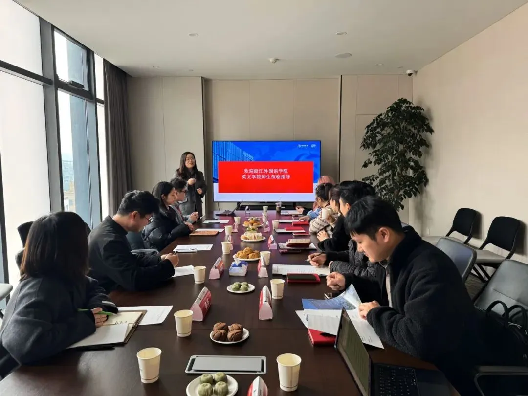 史维芳介绍了新通教育集团的发展情况。她表示,新通是一个重视年轻人、给予年轻人广阔发展空间的平台。他们始终相信,年轻人只要有梦想、脚踏实地,就能获得展现自我的机会,实现个人价值与职业成长的飞跃。同时,她也对英文学子能吃苦、肯思考的精神给予高度肯定。她期待浙外为企业输送靠谱、高素养的学生,在实习过程中提前感受就业的氛围,帮助年轻人快速成长,提升自身竞争力,为未来的职业生涯打下坚实的基础。