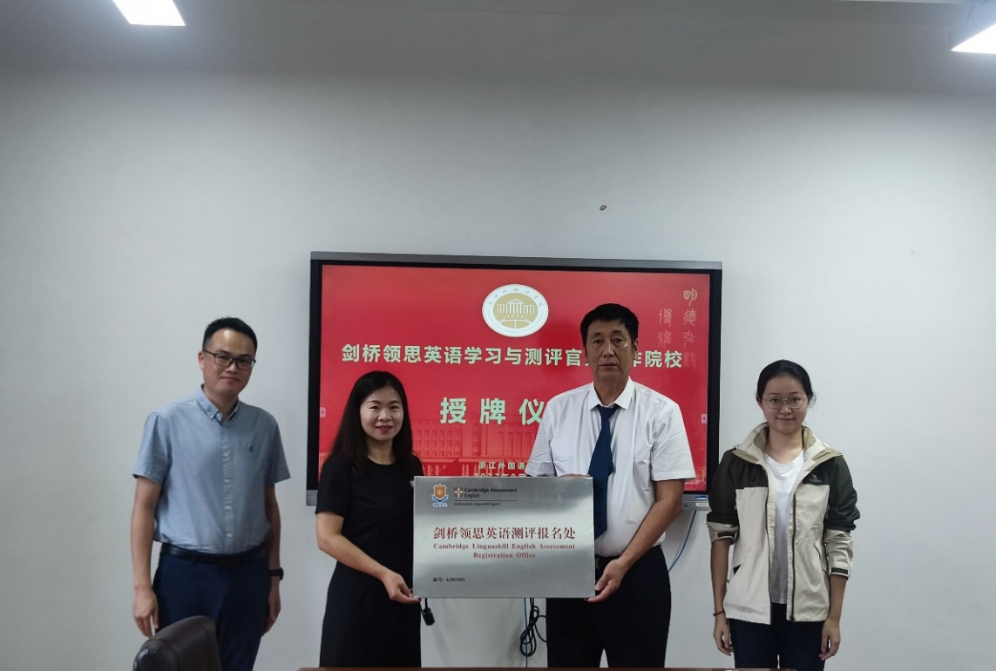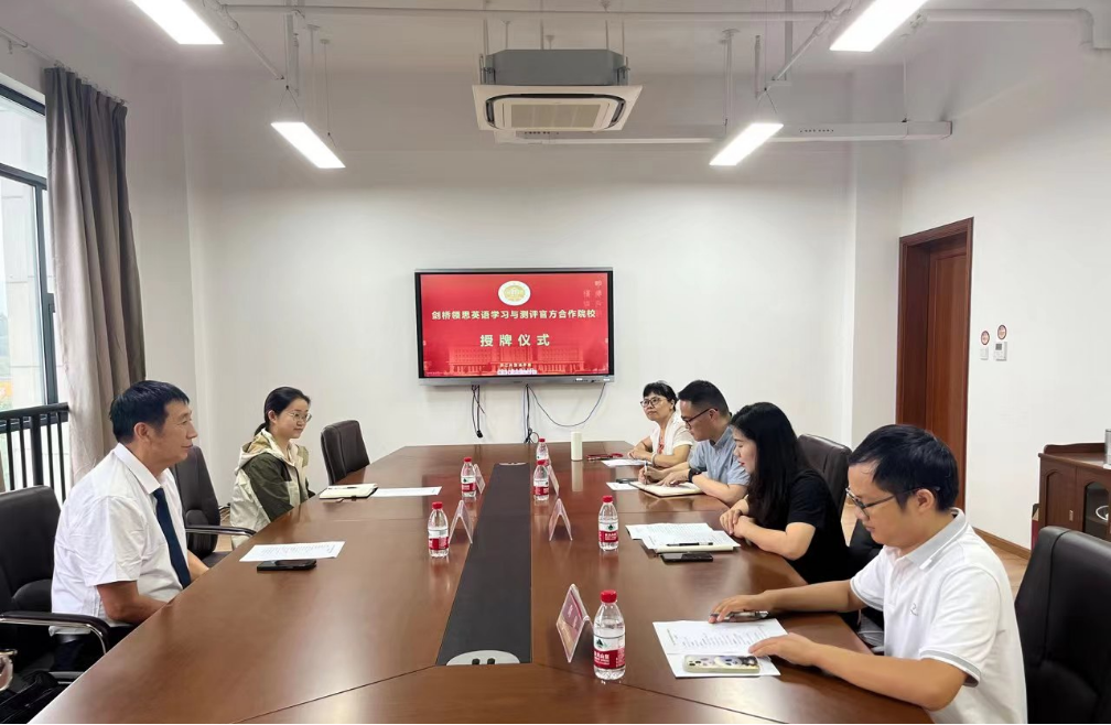 剑桥领思英语学习与测评官方合作院校授牌仪式,我校正式成为剑桥领思本科院校考点。学院党总支书记田俊杰、教务处副处长龚群辉,学院副院长陶伟,剑桥领思英语中国区校方代表姜福成、考务刘浩然参加会议,学院副院长郑淑贞主持。